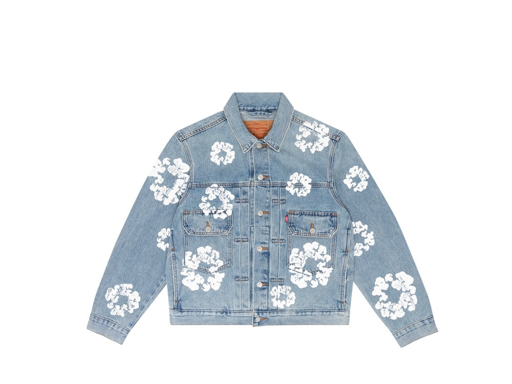 Upgrade your wardrobe with our Denim Tears Type-2 All Over Wreath Trucker Jacket Light Wash! Made with a unique wreath design, this jacket is perfect for adding a touch of style to any outfit. The light wash adds a trendy, vintage look while the denim material makes it durable and comfortable. Elevate your fashion game with this must-have jacket!