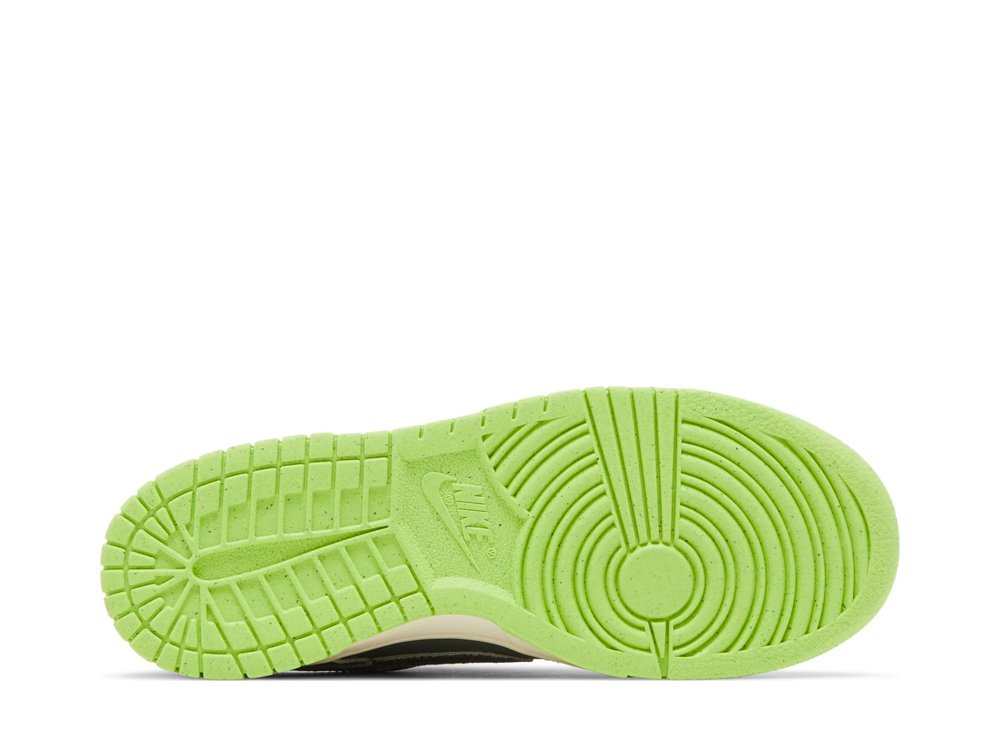 The Nike Dunk Low Swoosh Shadow Iron Grey (GS) gets in the Halloween spirit with an elevated build made for big kids. A monochrome dark grey finish is applied to the upper, featuring a smooth leather base with cracked leather overlays at the forefoot and heel. A cracked leather Swoosh casts a reflective shadow on the lateral side, while an additional hit of 3M appears on the Nike wordmark stamped on the back heel. Anchoring the low-top is an off-white midsole, supported by a speckled rubber outsole in Scream Green.